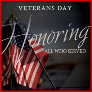 Buy a wine tasting or glass of wine on November 11 and your favorite Veteran gets one for free.